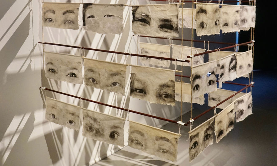 These are the eyes of 60 Asian women who responded to the image of Asian downcast eyes and hate towards Asians.